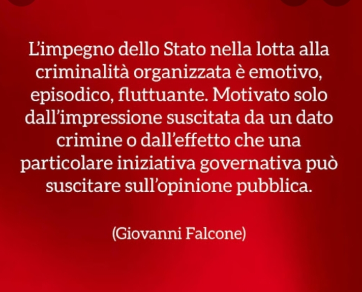 Questo ci porta a non sottovalutare le cose, ma vivere ogni momento della vita con saggezza e princìpi utili a combattere quella illegalità nascosta o sottovalutata per puro interesse politico o falso perbenismo.